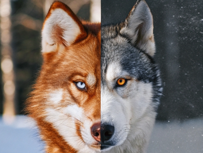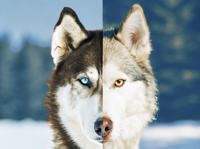 Uno de los ejemplos más intrigantes es el caso de los husky siberianos que, debido a una rara condición genética, presentan una mitad de la cara con características de perro y la otra mitad con rasgos de lobo.
